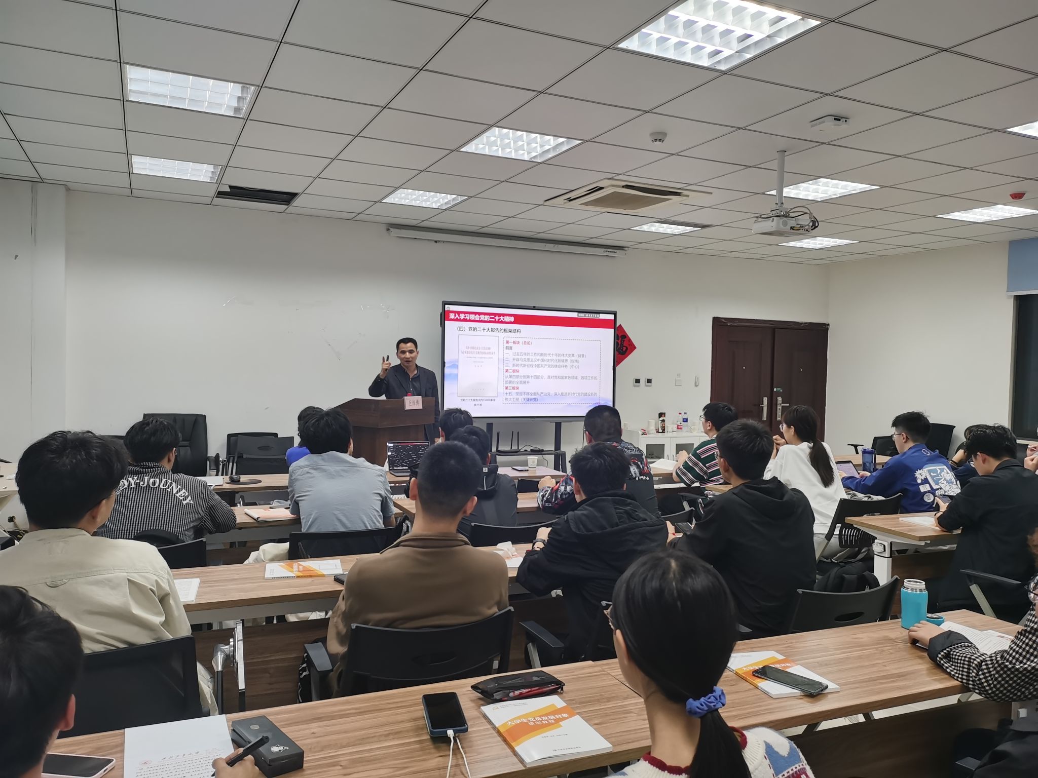 巨维博书记以《让青春在全面建成社会主义现代化强国之路绽放——从党的二十大报告看新时代好青年的使命担当》为题,从党的二十大主题、新时代十年的伟大变革、开辟马克思主义中国化时代化新境界、新时代新征程中国共产党的使命任务等方面对党的二十大报告进行了详细解读。同时,结合党的二十大报告对新时代青年的要求、新时代青年的使命与担当、新时代青年如何为建设一流大学而奋斗等内容,巨维博书记殷切希望与会人员加强政治理论学习、坚定理想信念、勇担时代重任,立志成为德智体美劳全面发展的社会主义建设者和接班人,为实现中华民族伟大复兴贡献力量。