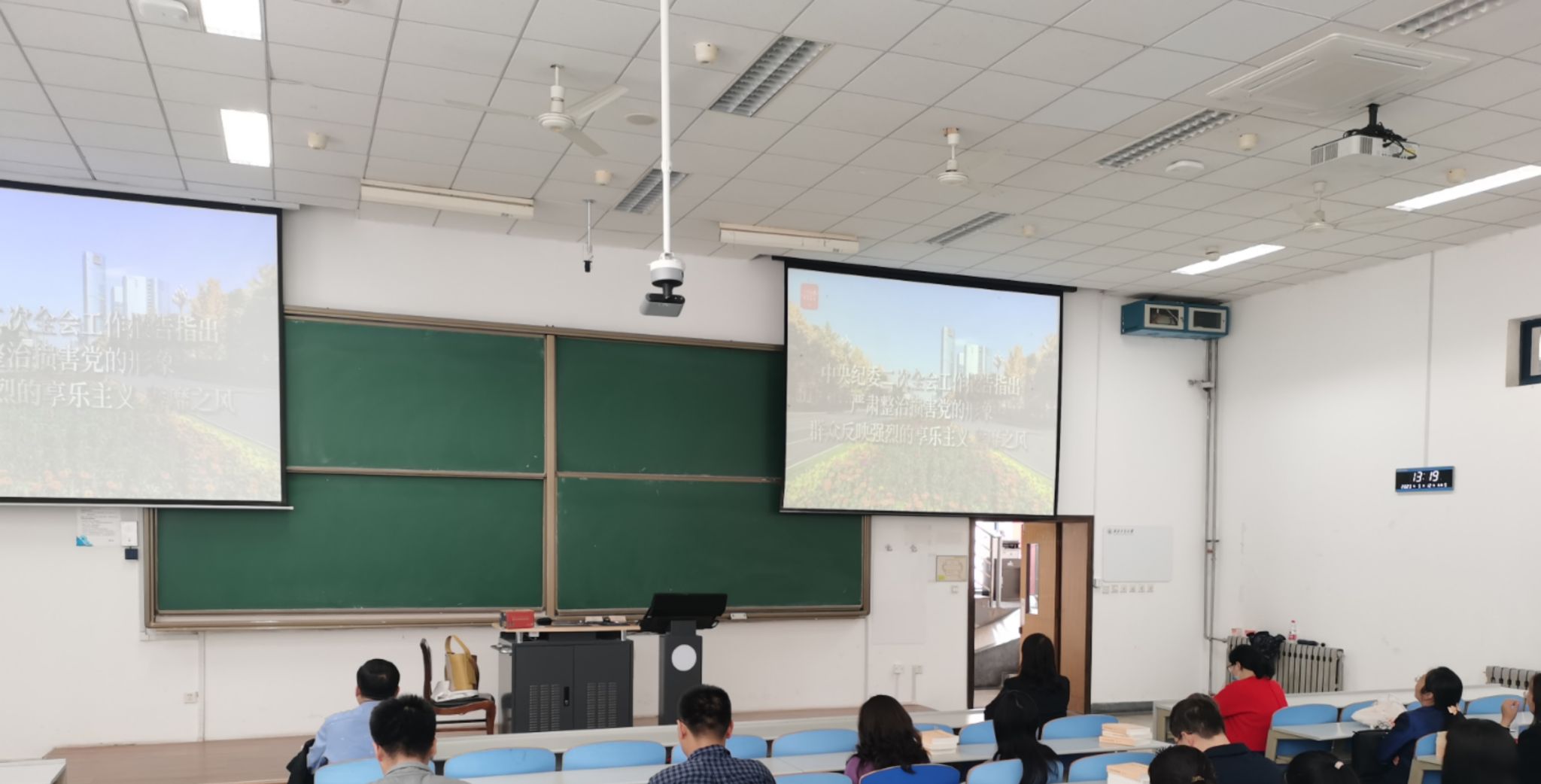 在长安校区数字化大楼广场前,学院党委书记王莉首先带领同志们集体观看学习了学校纪委办公室汇编的10幅有关“漫画说纪”和典型案例的宣传展板,图文并茂的形式使得展示内容更加丰富直观且意义深刻,各支部代表分别带头领学,进一步加深记忆,令人深省。随后,所有同志来到教学西楼D105教室集中观看了学院选取的《清廉中国丨廉方治未病》《密集通报敲响警钟,紧盯隐性腐败、奢靡之风等典型“节日病”》《八项规定是改进作风的切入口和动员令》等微视频内容,以案明纪,使警示教育效果进一步加强。王莉书记说:“希望通过展板和视频内容的学习,使学院党员干部和教职工都能引以为鉴,严格遵守党章党规党纪和有关法律,进一步做到以德修身、以德立学、以德施教,不断涵养清正师风。