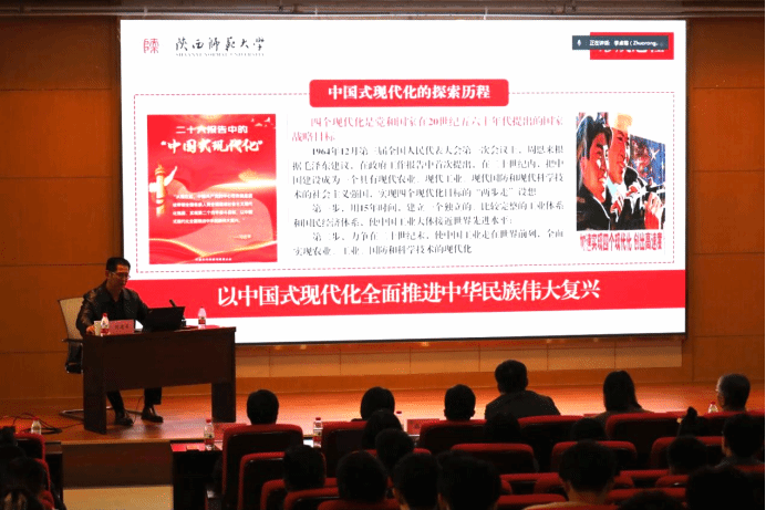 11月8日,蜜桃直播 联合电子信息学院共同举办学习贯彻党的二十大精神专题党课,特邀陕西师范大学远程教育学院书记刘建军作了题为《以中国式现代化全面推进中华民族伟大复兴》的党课。蜜桃直播 和电子信息学院理论学习中心组成员、师生党员代表、青年学习理论小组成员共200余人参加会议。会议由蜜桃直播 党委书记王莉主持。