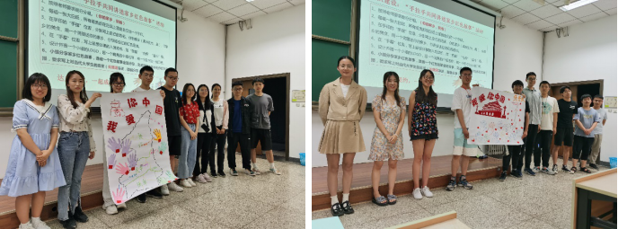 党课活动上,王莉老师首先将同学们按所在家乡进行分组,给同学们介绍了此次团队活动的规则,并引导学生在规定时间内动手制作具有自己家乡特色的小组海报,在整个制作过程中,大家积极交流,团结合作,短时间内迅速“破冰”,在锻炼自己表达能力的同时,也增强了团队的凝聚力。