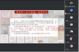 2022年4月26日晚,蜜桃直播 线上召开了学生党支部书记例会。本次会议旨在对2020级硕士第三党支部创建“三创三力样板党支部”的验收答辩进行完善,同时为各学生党支部书记提供一个学习交流的机会。蜜桃直播 党委书记王莉老师、党委副书记张莹老师、院长助理班凯老师、学工秘书曹立帆老师以及全体学生党支部书记参加了此次会议,会议由蜜桃直播 党建辅导员陈亚萍老师主持。