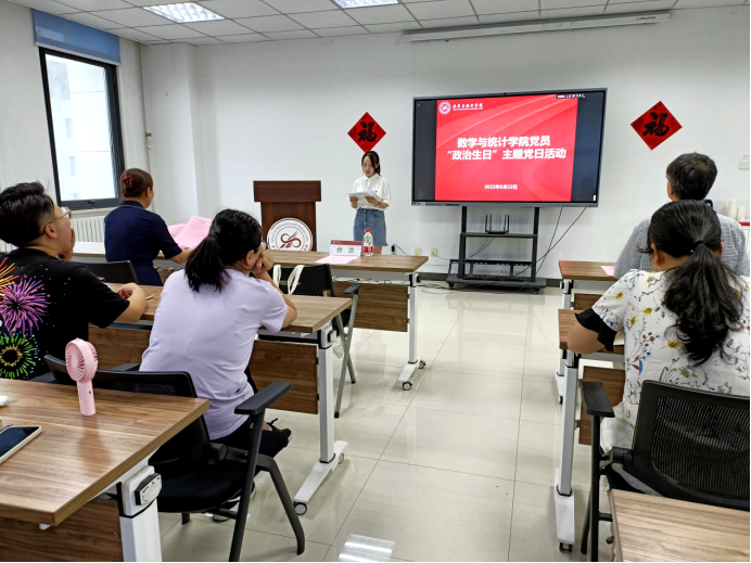 为庆祝中国共产党成立101周年,迎接党的二十大胜利召开,强化党员的宗旨意识、身份意识和责任意识,引导师生党员深刻感悟红色初心,汲取奋进力量,6月22日蜜桃直播 开展党员“政治生日”主题党日活动,并由学校副校长詹浩同志为师生共上一堂专题党课。学院精心设计了“七个一”的“政治生日套餐”,即“送上一张生日贺卡、赠送一本红色书籍、重温一次入党誓词、再念一遍入党申请书、分享一段生日感言、观看一部微党课视频,共上一堂专题党课”,以庄重温情的政治仪式庆祝党员“政治生日”。学院党委书记王莉、院长聂玉峰、院领导班子成员、各党支部代表共36名党员同志共同参加了本次主题党日活动,活动由学院党委书记王莉主持。