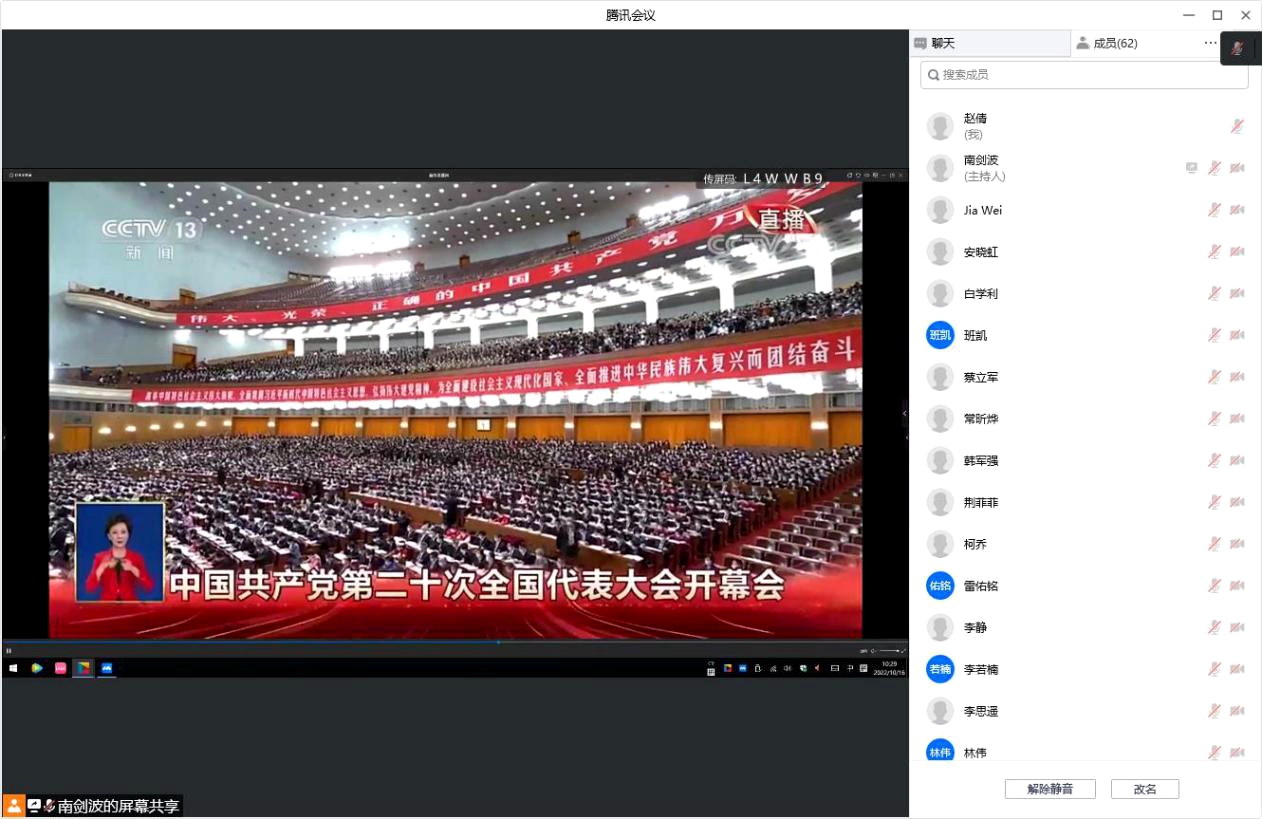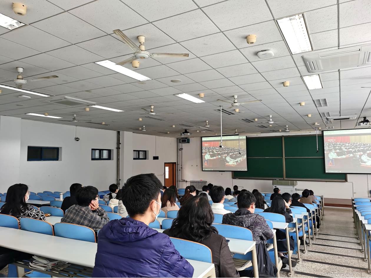 蜜桃直播 组织学院领导班子及党委理论学习中心组成员与学生党员代表在长安校区启翔楼357会议室共同观看党的二十大开幕会,认真聆听习近平总书记向大会所作的报告,共同亲历这一庄严的时刻,第一时间学习领会大会精神。学院其他教职工党员通过线上会议共同观看党的二十大开幕会,学院全体学生党员以党支部为单位分别在报告厅、教室、会议室等地,通过电视、网络等多种形式收看开幕会盛况。