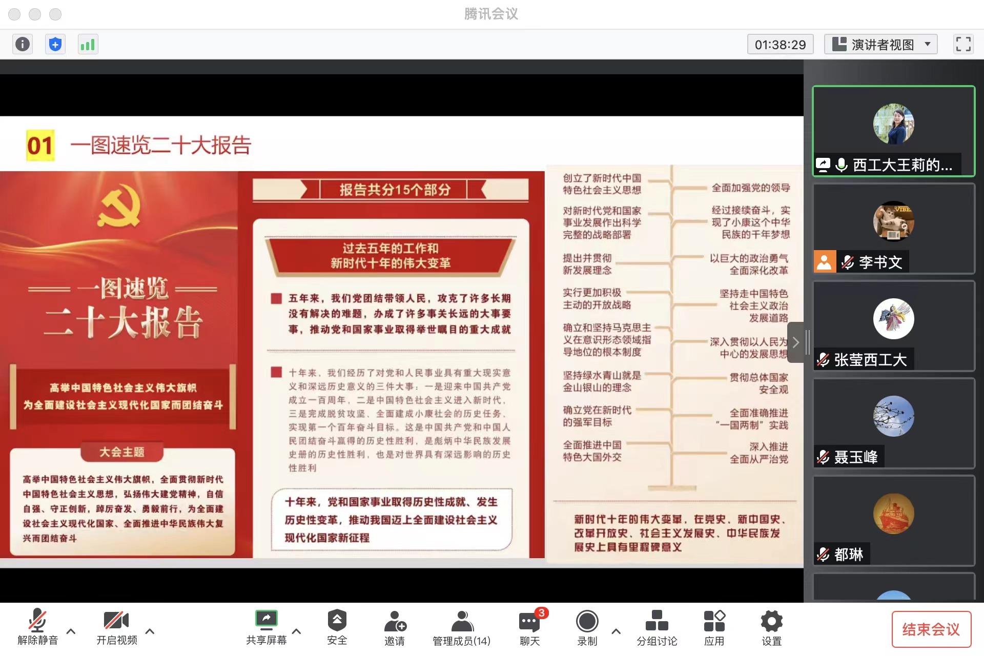 10月27日蜜桃直播 党委理论学习中心组通过线上会议开展了学习贯彻党的二十大精神专题学习研讨扩大会,学院党委理论学习中心组成员、院长助理、教职工党支部书记参加了会议,会议由学院党委书记王莉主持。