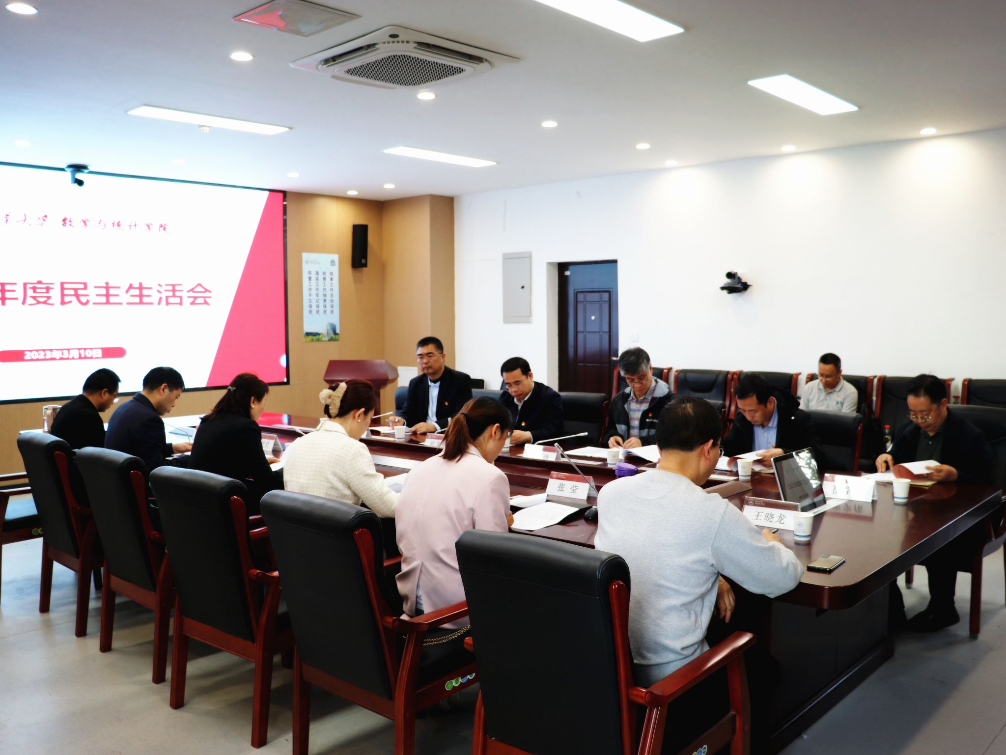 最后,王莉同志进行了表态发言。提出学院班子一是要深入学习落实习近平总书记对于基础学科的重要论述,做到真学真懂真用,推动数学学科的大力发展。二是要通过民主生活会加强监督、直面矛盾、解决问题,围绕查摆出的问题针对性推进整改落实。三是班子要以党的二十大精神为指引,不断强化对学院发展的顶层规划,狠抓学校“四个行动计划”的落实力度,全力推进学院“双一流”建设。