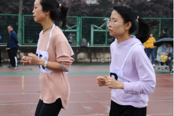 细雨还在不紧不慢的下,老师们参加比赛的热情却更加高涨。在随后进行的男子1500米、男子/女子100米、男子/女子400米、混合4x100米接力比赛中,南剑波、王丽、张慧、马啸、常昕烨等老师拼尽全力、步履不停。跳远比赛中,张莹副书记于会后赶来,仍再创佳绩,梅钰、马荣、杨洋等几位老师也挑战自我、顺利完赛。志愿者提前准备好了丰富的食物补给,一边为等待的老师撑伞,一边关注着赛场上的老师呐喊助威,师生凝心聚力,赛场其乐融融。