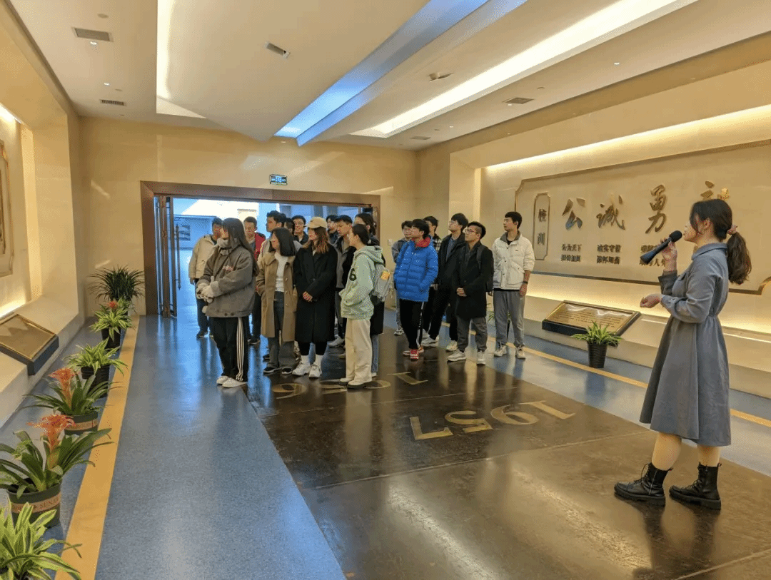 2023年11月15日上午,蜜桃直播 学生会功能性团支部全体成员在校史馆前集合,在校史馆宣讲团志愿者的带领下参观校史馆,刚入校史馆,眼前的“公诚勇毅”校训和“三实一新”校风让人大受震撼。
