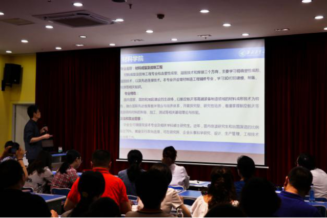 5月3日,于在重庆藴华教育二楼报告厅,针对在场的高三学生家长,做了三方面的宣讲。林伟老师介绍了学校--最美西工大成就最好的您,肖华勇老师介绍了学校的三航和材料、计算机、数学等专业及其学科特色,温金环老师宣讲了重庆新高考政策,王睿璇与随行招生大使就玛丽女王工程学院办学情况和招生政策进行了讲解,各位家长反映热烈,纷纷咨询各种有关问题。 5月4日,重庆招生组分别赴万州高级中学和第二高级中学,面对高三学生介绍了蜜桃直播 相关情况,并和高三年级主任就招生相关问题进行进一步沟通。随后,4日至5日,4名招生大使前往重庆育才中学等重点中学分发招生资料,并就招生相关问题与在校学生进行沟通交流.