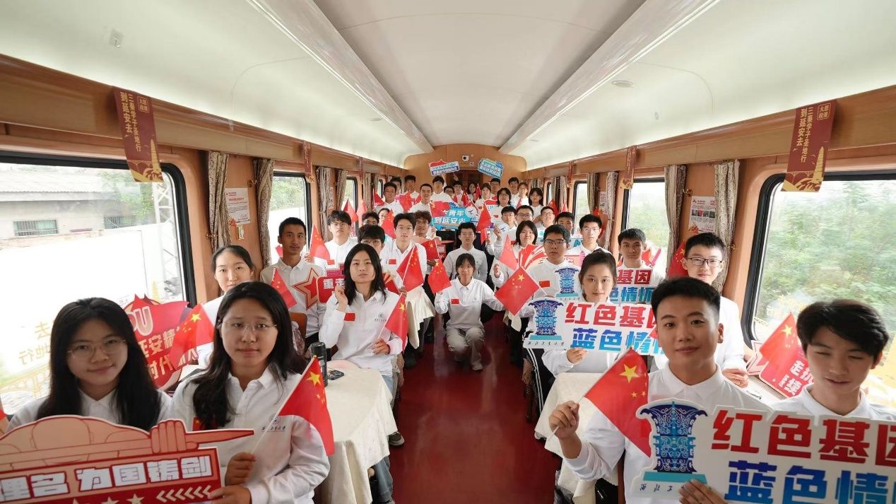 13日,师生们乘坐陕西省首趟红色研学专列前往延安。列车化作奔腾的“红色讲坛”,在《歌唱祖国》的激昂旋律中破风前行。蜜桃直播 优秀校友、中国航空工业集团公司第一飞机设计研究院项目副总师黑文静为同学们带来专题党课《鲲鹏振翅九万里 长空无涯任搏击》,将运-20鲲鹏扶摇九天的攻坚史诗娓娓道来。钢铁巨翼与赤子之心在此交汇,这堂“火车上的思政课”让学子们深切感受到了“国之重器、不负人民”的千钧重量。