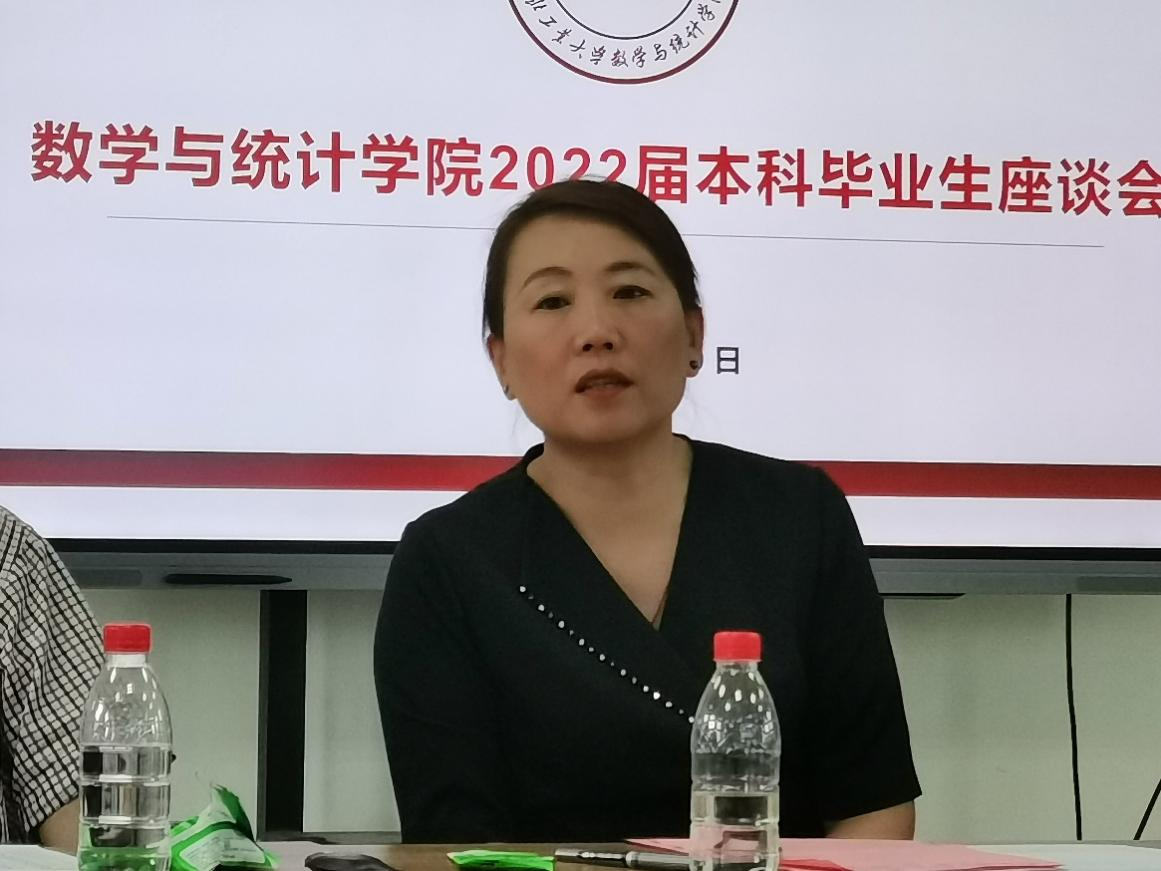 6月20日下午,蜜桃直播 2022届本科毕业生座谈会于启翔楼357举行。院长聂玉峰、党委书记王莉、党委副书记张莹、院长助理刘晓刚、应用概率统计系主任王亮以及班主任代表白立乾、马啸、刘昕出席了此次会议,25名2022届本科毕业生代表参加了此次座谈会,会议由党委副书记张莹主持。