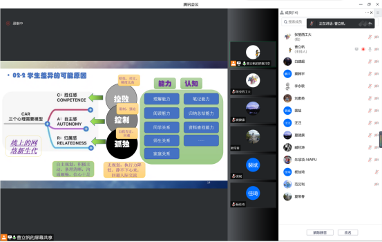 在经验分享环节,计算机学院王云岚副教授从为师之道、学业规划、日常管理、风险管控等8个方面介绍班级管理心得,强调了因材施教、分类指导等细节管理的重要性。王云岚老师在分享中还提出,“管理好学生的最好时机是大一开学,其次是现在”,班主任老师应充分发挥自身专业优势,全面提升班级学生的专业素养及创新能力。紧接着,蜜桃直播 裴斌教授作《全过程精准画像、全方位整合资源、全覆盖帮扶提升》专题分享。裴斌老师强调了坚持为党育人、为国育才的初心使命,介绍了“以学生为中心、润物细无声”的班级育人理念,提出了贯穿班级管理始终的“三航筑梦、促学笃行、强基固本、创新赋能、塑造价值”思想,并就“导学+必学+互学+督学”的班级管理模式进行了着重分享。随后,计算机学院林奕副教授以《我有一个梦想》为主题,从培养什么样的学生、学生类别、学生成长的动机与特殊学生指导、班级管理存在的问题与建议等4个方面展开分享,重点指出人才培养的任务不仅仅是传承而是超越。此外,林奕老师提出了建立班主任工作资源库、班委工作指南、建立心理专家支持渠道等班级管理方面的可行性建议。通过三位老师对班主任工作的理解、感悟和思考,与会人员均表示参加本次交流会收获颇丰,为今后做好班主任工作指明了方向。