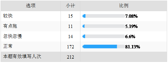 在第四周教学过程中,针对本班实际还请学生从他们的视角制作了课程情况调查问卷,共设置了27道题目,收到212分反馈,反馈率76.5%。