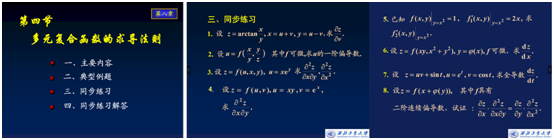 首先,整体结构。需更加注意课程的逻辑性,删繁就简,让学生抓住课程主线,掌握主要思路和方法,避免满堂灌。下图为第八章多元函数微分学梯度章节的教学内容的分层次设计,从课前引入、重点内容到课后延展,进行了丰富多样但逻辑清晰、结构完整的设计,每一个部分都为同一个主题服务,繁但不乱的设计,更有助于学生理解和掌握课程的核心内容。