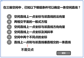 · 选择题的一专多能。课堂中的互动的重点不是“对错”而是“了解”,课堂互动不是“我不要你觉得,我要我觉得”,而应该是“我不要我觉得,我要你觉得”。所以,做选择题的目的也是为了了解学生对知识的掌握,同时,通过做这道选择题加深学生对知识的理解。下图中在有限时间内完成了那道题就选相应的选项,如果都不会就选D,最后要把所有人的答题情况发给学生,使得学生在“独自”学习中也能找到“参照物”,对自己的学习效果进行定位,及时调整学习方法和跟上课程节奏。