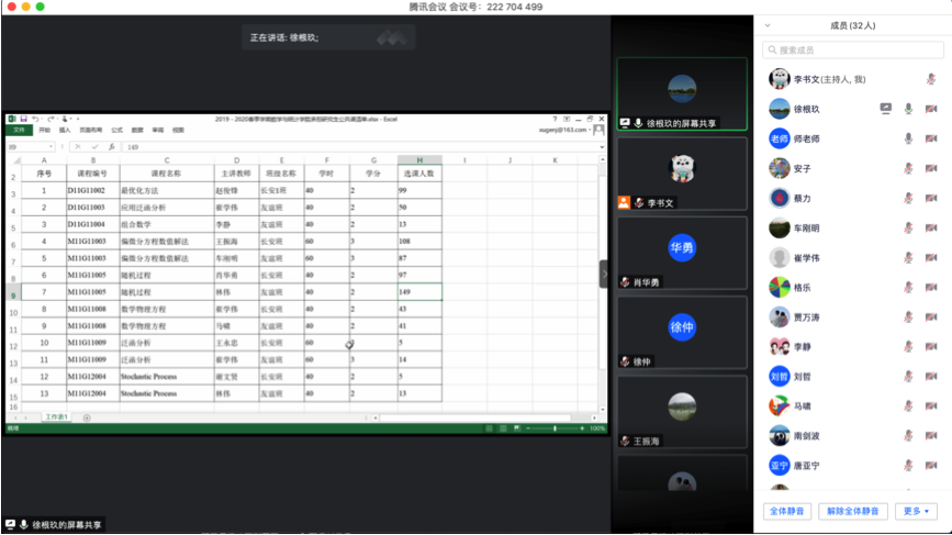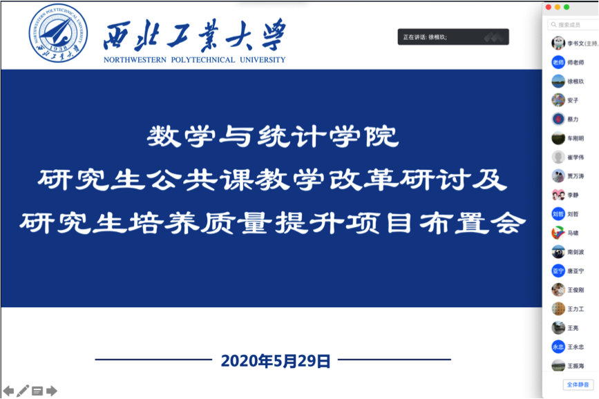为贯彻落实教育部“在线教学与线下课堂教学质量实质等效”的要求,有效做好学生分批次返校期间线上、线下教学活动的平稳衔接,确保研究生招生规模扩大之后的数学公共课教学质量,规划新形势下研究生公共课的改革发展思路,推进公共课的教学改革,5月29日,蜜桃直播 通过腾讯会议召开研究生公共课教学改革研讨及研究生培养质量提升项目布置会,学院院长聂玉峰、副院长徐根玖、主管研究生工作的二级学科负责人、公共课负责人、首席教授及任课教师及研究生培养质量提升项目负责人参加了此次会议,会议由徐根玖主持。