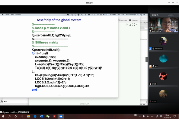 2020年8月17日至8月28日,蜜桃直播 邀请法国贡比涅技术大学Piotr Breitkopf教授为我校师生在线讲授《动力学拓扑优化/Topology Optimization with dynamic》课程,该课程参与学习人数40人左右,24学时。