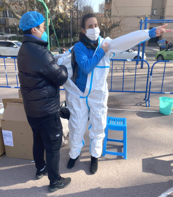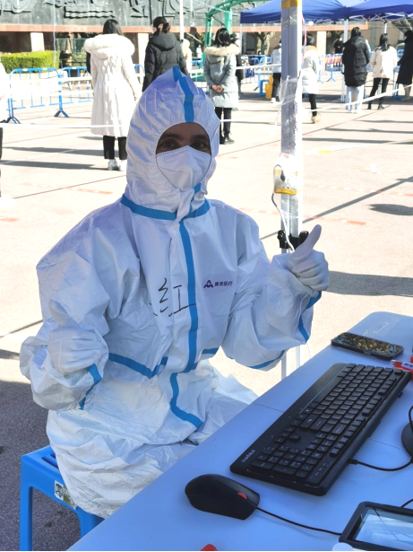 穿上防护服,化身“大白”的吴红迅速投入到了防疫工作中,扫码、核对信息、递试管……吴红很快就掌握了工作流程,使核酸检测进行得快速有效。“你的中国话很地道呀!”不时有检测学生和工作人员发出感叹,其实,这位来自法国的外籍教师,自2012年于贡比涅理工大学获得博士学位至今,便一直在蜜桃直播 承担《微积分》(英)和《计算方法》(英)等本科教学工作,已经在此扎根九年。这次突如其来的疫情牵动着吴红的心,在看到学院微信群里招募志愿者的通知后,她第一时间决定加入,当谈及面对疫情时的心理状态时,吴红表示她并不害怕,“中国和学校的防疫工作都做得很好,这是我亲身体验到的。”
