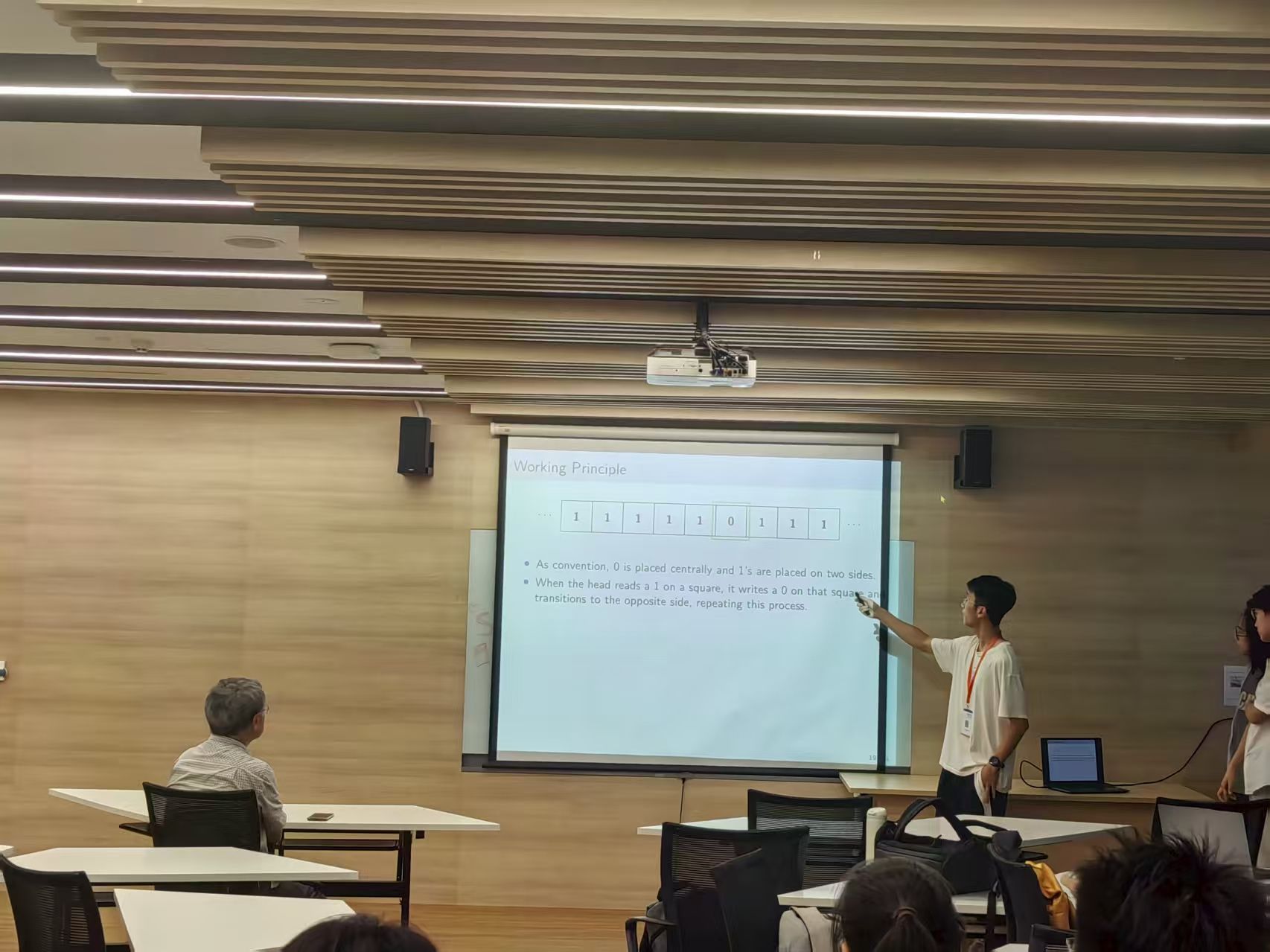 在为期两周的暑期学堂过程中,同学体验到了一系列丰富的数学课程体验。从量子力学中的数值计算,用矩阵来表示电子自旋与薛定谔方程;到图论矩阵的应用,抽象的图结构和路径转化成了简明直接的矩阵。从生成式AI,用数据来推动AI深度学习;到利用AI大模型来帮助解决数学问题,证明黎曼猜想。从“囚徒困境”中感受博弈论的艺术,将抽象数学化为生活寓言,同学们化身博弈参与者,各有立场争论不休,最终领悟纳什均衡的精妙——数学不仅是公式,更是对人类行为的深刻洞察;到现代投资组合讲座中喊出那句名言——“分散投资是免费的午餐!,利用数学曲线来决定资源分配。还有反推数学,遍历理论,机器学习等各种数学分支与交叉讲座,各位教授用生动又严谨的语言带领各位同学走入了一个又一个全新的数学领域,探索不一样的数学魅力。