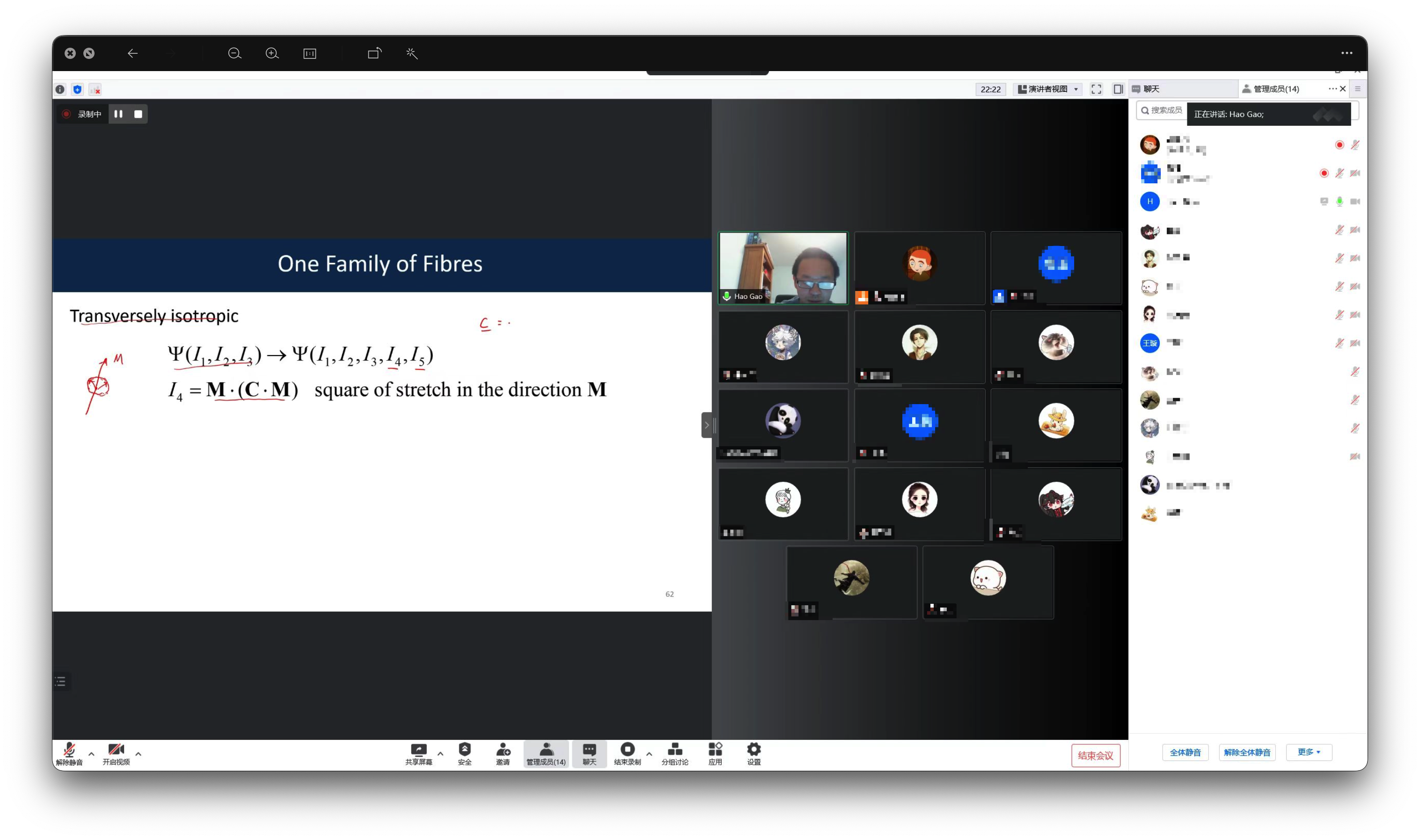 2022年6月28日14:00,暑期国际学堂《心脏力学:非线形弹性理论与计算》在腾讯会议云上开课,该课程为期4天,分别为6月28和30日,7月20和22日。授课教师是来自格拉斯哥大学蜜桃直播 的应用数学研究员Gao Hao。该课程参与者近20人。