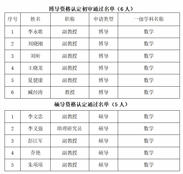 经教师申报,学院审核,对破格申请博导的送校外同行评议,并组织学位评定分委员会及导师资格认定小组评审,现将导师资格认定学院评审结果予以公示,公示期为3个工作日,如有异议,请在公示期内向教学办公室反映。以下名单按照姓名首字母排序。
