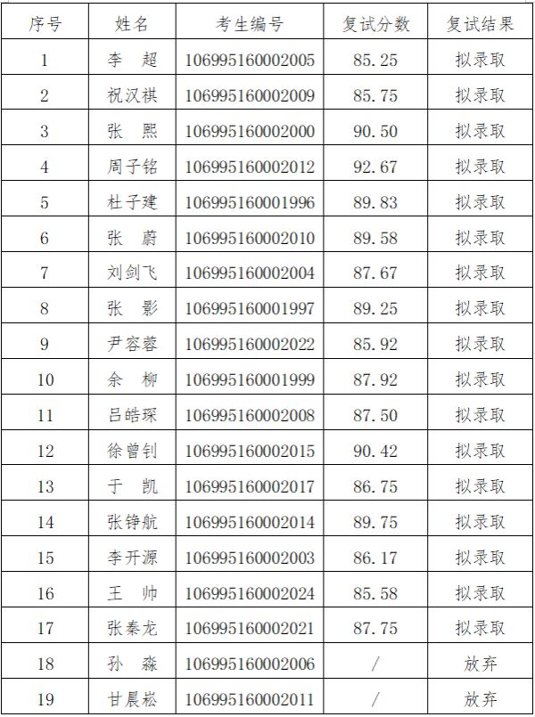 根据《蜜桃直播 2025年博士研究生复试工作方案》,经复试资格审核及现场复试等环节,现将我院2025年博士研究生考核结果公示如下: