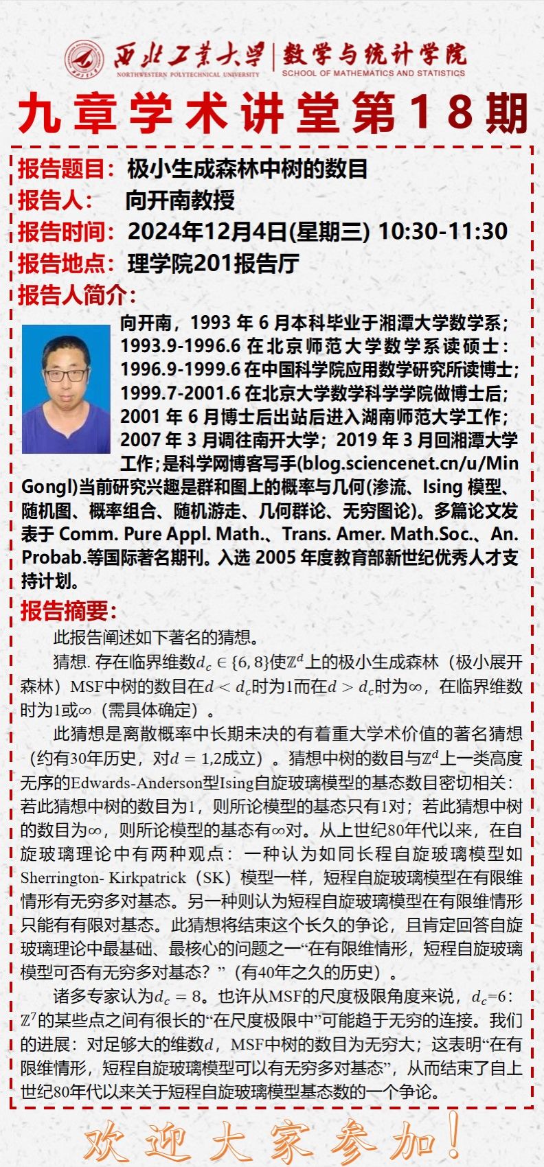 【九章学术讲堂第18期】极小生成森林中树的数目