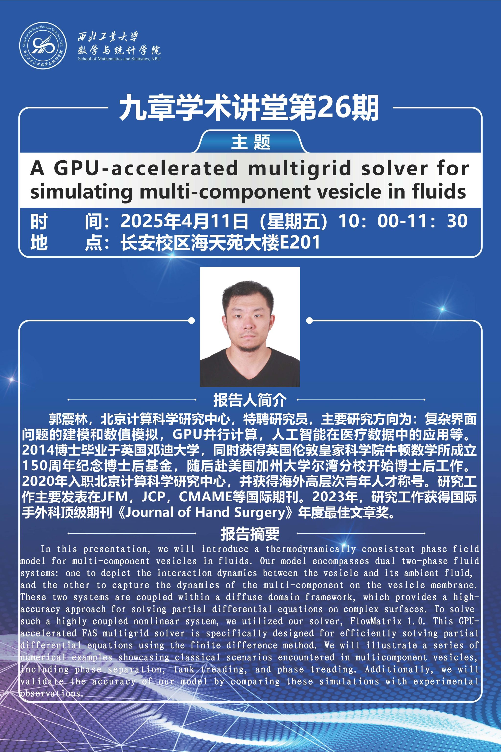 【九章学术讲堂第26期】A GPU-accelerated multigrid solver for simulating multi-component vesicle in fluids