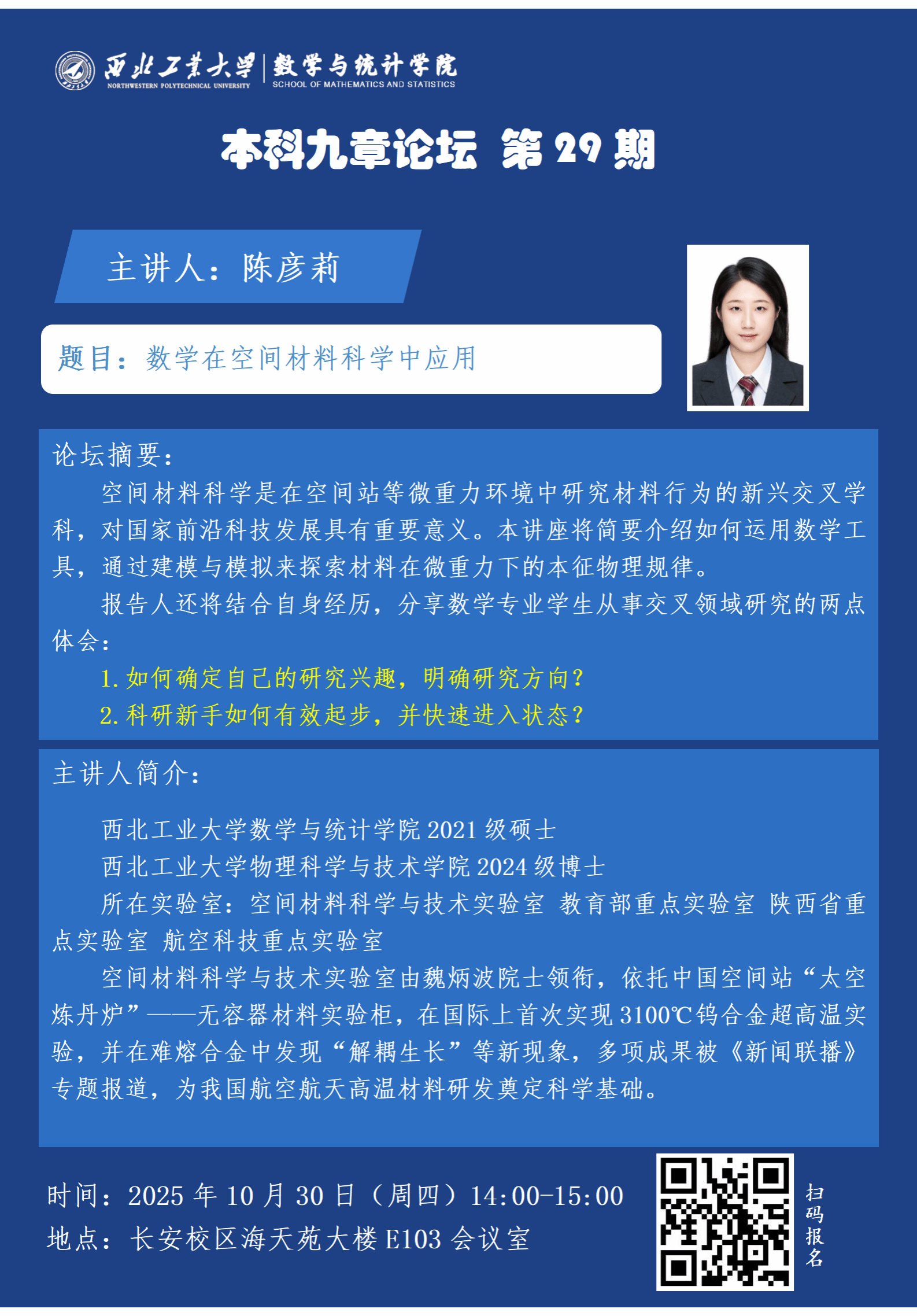 【本科九章论坛第29期】数学在空间材料科学中应用