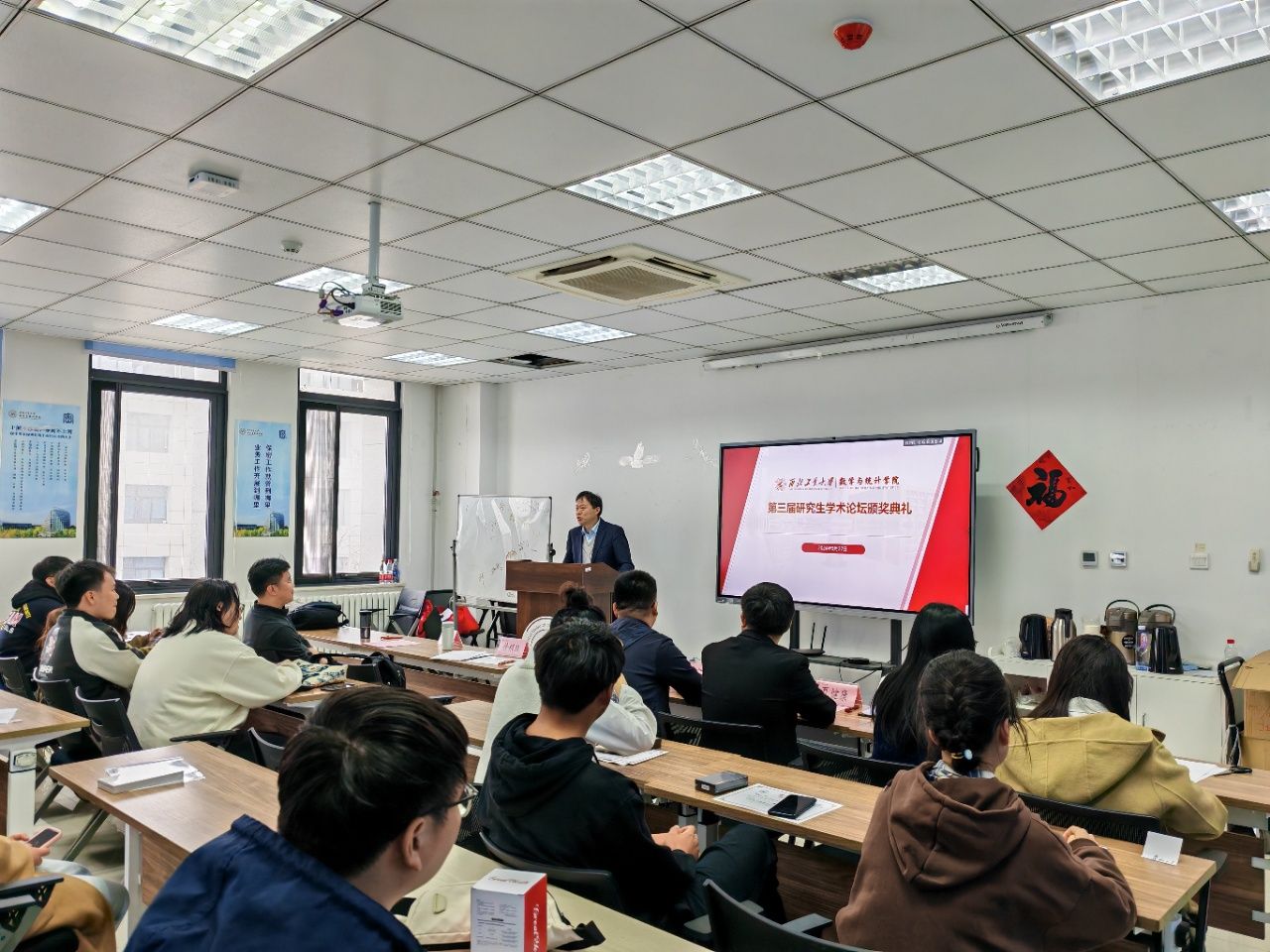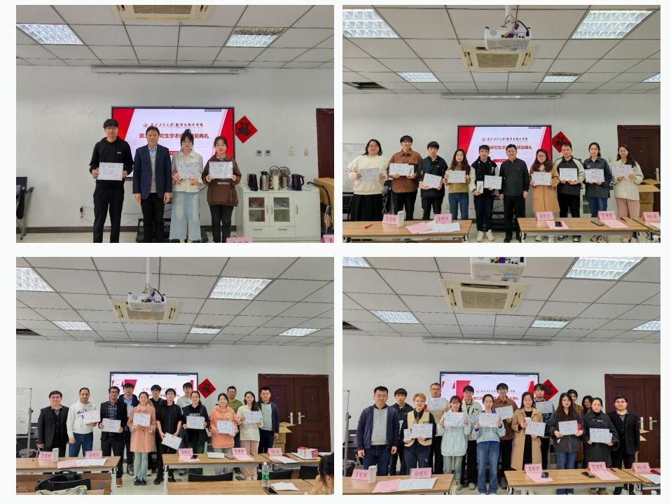 为进一步促进数学学科“双一流”建设,深入贯彻落实学校《一流研究生人才培养行动计划》,鼓励研究生展示创新成果,2024年3月27日,蜜桃直播 在启翔楼357会议室举办第三届研究生学术论坛颁奖典礼。副院长徐根玖,教师代表王俊刚、夏健康,辅导员冀腾宇,研究生秘书杨洋及获奖研究生共50余人出席本次颁奖典礼。典礼由王俊刚主持。