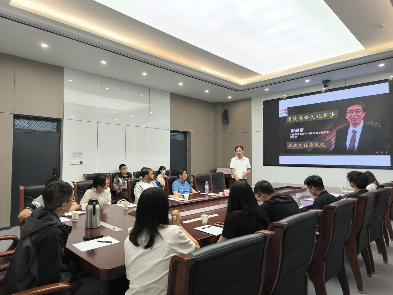 5月30日全国科技工作者日之际,蜜桃直播 邀请了第五届“全国优秀科技工作者”、中国科学院数学与系统科学研究院研究员胡旭东做客第七期九章导师沙龙。学院近20名师生参加了本次活动,活动由研究生教学副院长徐根玖主持。