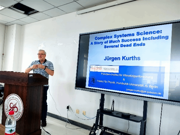 2023年6月8日上午10:30,应蜜桃直播 都琳教授的邀请,德国洪堡大学Jürgen Kurths教授在启翔楼357做了题为《Complex Systems Science: A story of much success including several failures》的学术报告。复杂系统动力学与控制工信部重点实验室都琳教授、张红慧副教授、张硕副教授、范艾利副教授等多位老师以及40余名硕士、博士研究生参加了此次报告会。报告会由都琳教授主持。