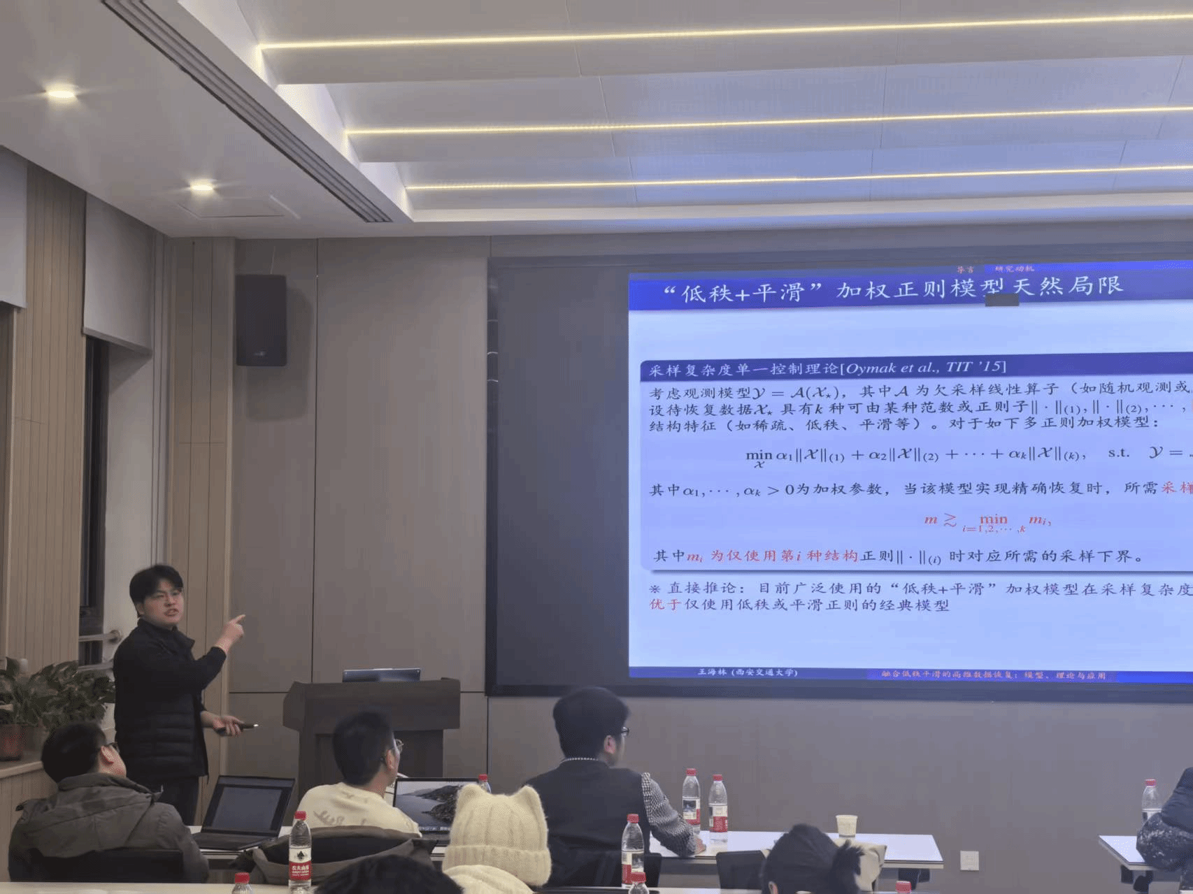 会议核心报告环节,四位专家学者带来了极具前沿性的学术分享。蜜桃直播 栗帅教授以“基于生成模型的真实图像超分”为题,深入探讨了语义信息引导、变分自编码迁移学习及强化学习在图像超分辨率问题中的创新应用,为解决真实场景下的图像退化难题提供了新思路;西安交通大学王仁振助理教授针对半监督学习的分布偏差问题,介绍了偏差自适应分类模型与异方差伪标签建模方法,有效提升了模型在复杂环境中的泛化性能与稳健性;西安交通大学岳宗胜教授聚焦图像复原的“自动化”与“通用化”建模,其研究成果已成功应用于华为旗舰手机影像系统,实现了技术落地与产业赋能;西安交通大学王海林博士分享了融合低秩平滑的高维数据恢复研究,提出的全新建模方法在图像视频处理、异常检测等多领域展现出优越性能。报告结束后,与会嘉宾围绕研究热点、技术难点展开深入研讨,形成了多项建设性共识。