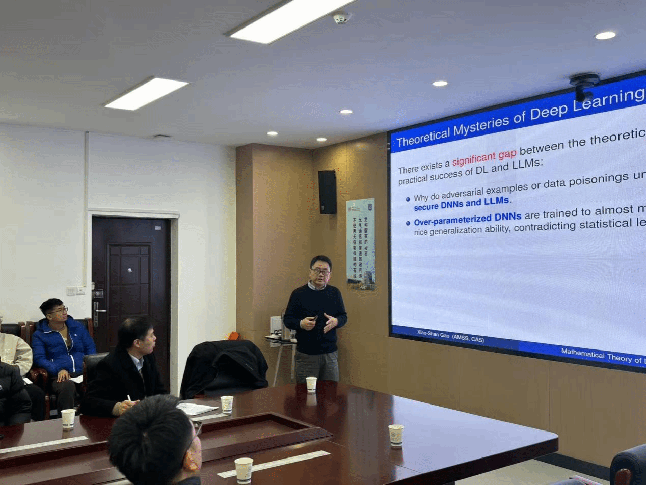 在互动环节,高小山耐心解答了师生们提出的问题,现场气氛活跃。他为在场师生介绍了深度学习在多个不同领域的前沿进展,并围绕如何开展深度学习的探索研究提供了建议。