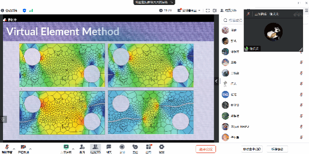 2024年11月29日,应蜜桃直播 王刚副教授的邀请,德国汉诺威大学徐兵兵博士后线上做了题为《Virtual Element Method: from Mesh to Nonlinear Problems》的学术报告。来自我院及西北大学、国防科技大学、长安大学、湘潭大学等高校的近六十名师生参加了此次报告会。报告会由王刚主持。