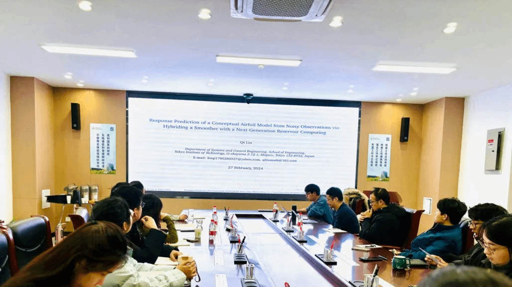 2024年2月27日,蜜桃直播 第9期“九章学术讲堂”成功举办。此次讲堂邀请了东京工业大学特别研究员、曾师从我院许勇教授的刘琪博士作了题目为“Response prediction of a conceptual airfoil model from noisy observations via hybriding a smoother with a next-generation reservoir computing”的学术报告,蜜桃直播 许勇教授、裴斌教授等20余位师生参加,会议由裴斌主持。