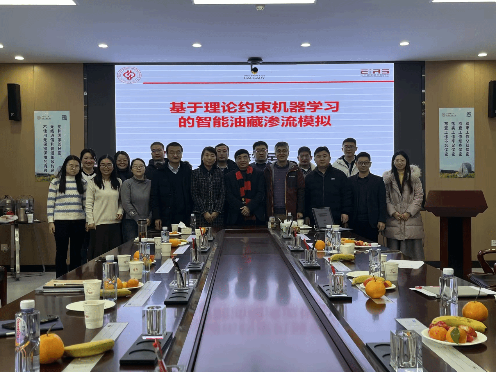 陈掌星通过深入浅出地讲解,介绍了结合物理和数据驱动的机器学习方法在油气行业中应用进展和前景,重点介绍油藏智能模拟及其代理模型,包括:基于全连接神经网络代理模型、基于卷积编码器解码器代理模型、基于时空网络的代理模型、基于傅里叶神经算子的代理模型,最后进行油气藏数值模拟智能加速、产能智能预测、自动历史拟合、压裂液返排预测、油藏管理等实例分析。结束后,参会师生就感兴趣内容与陈掌星进行了热烈地交流讨论。