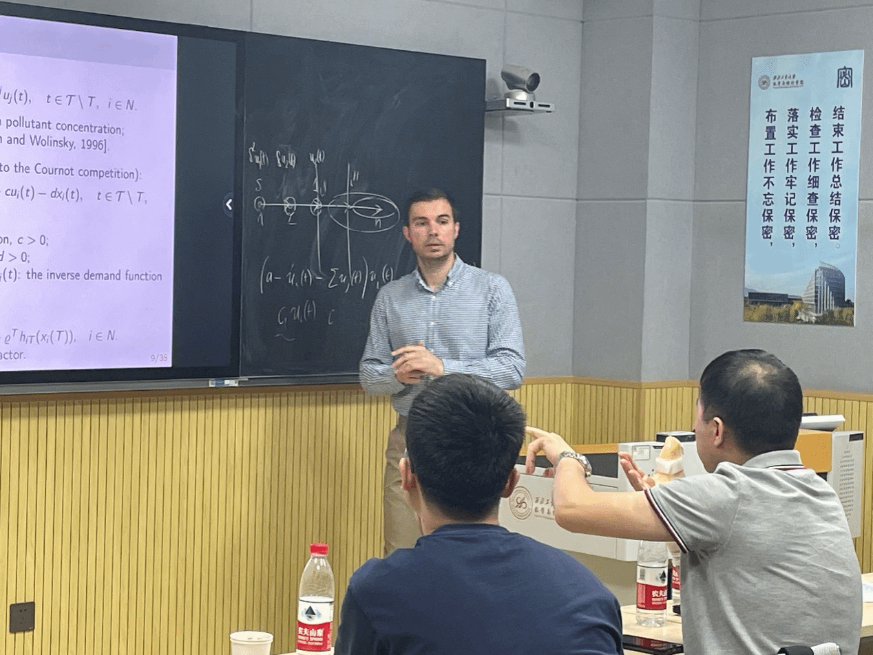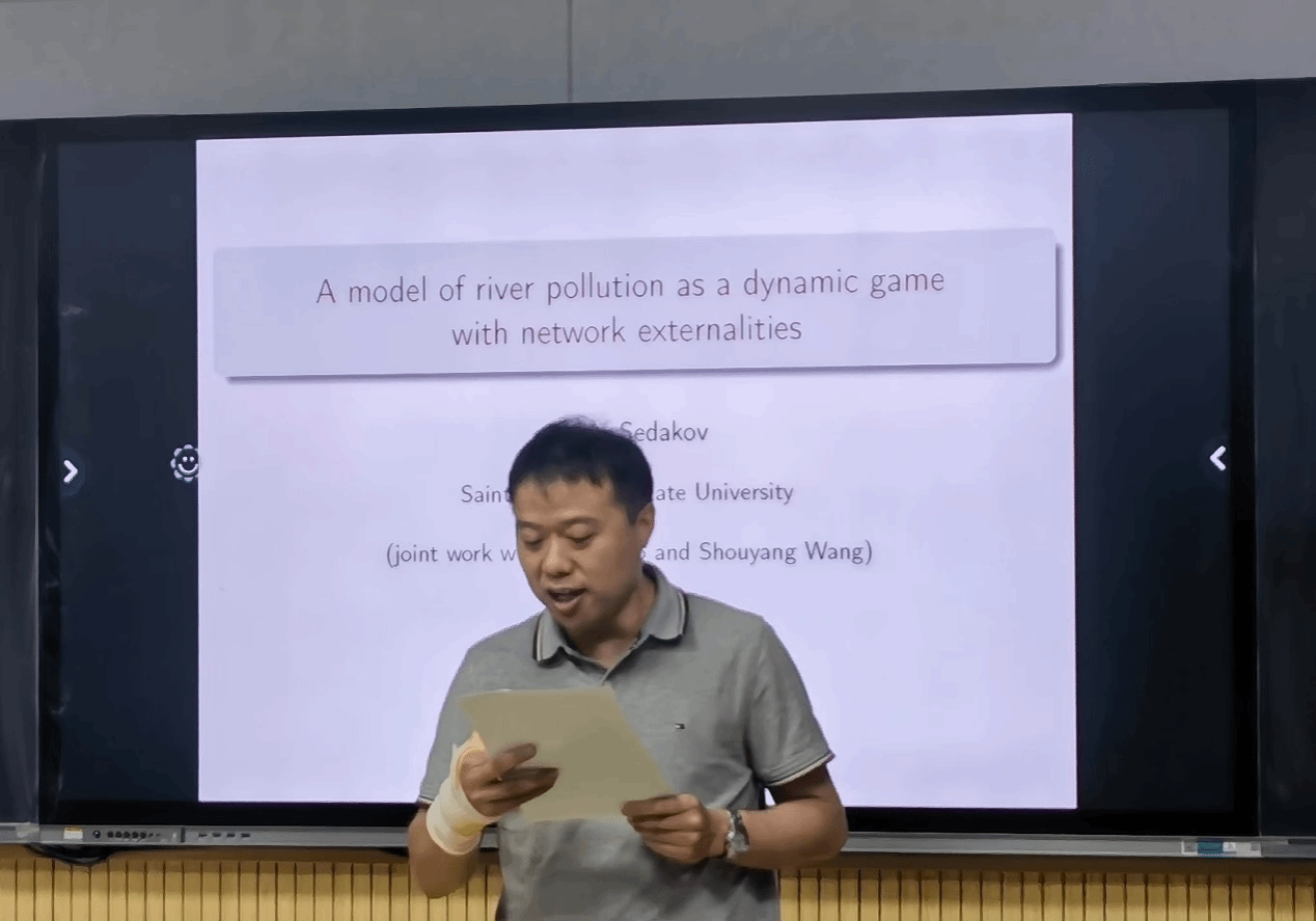 2023年5月15日-5月20日,受徐根玖教授邀请,圣彼得堡国立大学Artem Sedakov教授访问蜜桃直播 ,进行学术交流并商谈相关合作事宜。5月15日上午,Artem Sedakov教授于理学楼315会议室做了题为 “A model of river pollution as a dynamic game with network externalities”的学术报告。报告由徐根玖教授主持,40余名师生参加了学术报告交流。