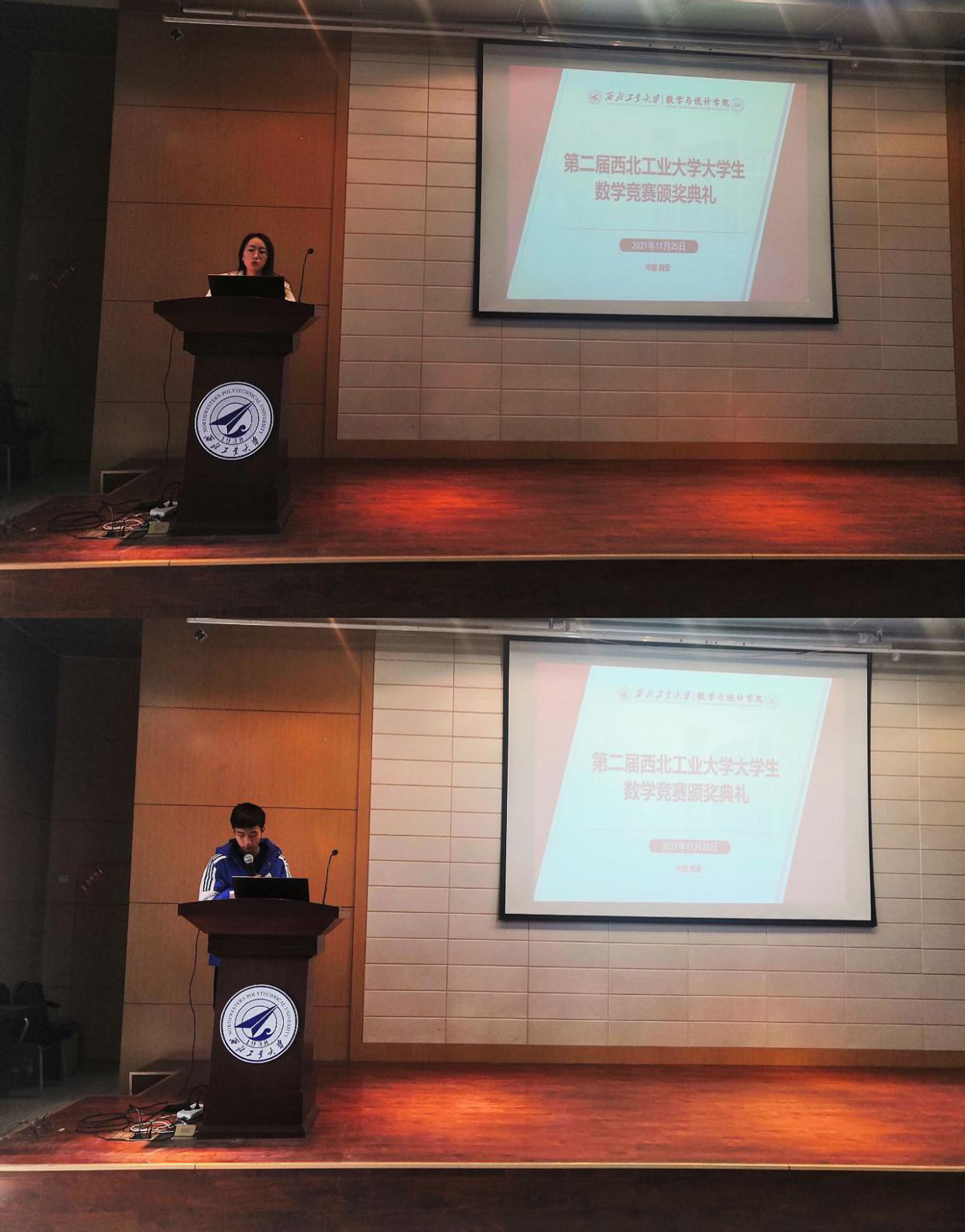 都琳介绍了举办西工大数学竞赛的意义及本次竞赛的总体情况。本次数学竞赛全校共有887名学生报名参赛,竞赛分为非数学专业组和数学专业组,其中,非数学专业组765人,数学专业组122人。我院数学专业组获奖学生共104人,其中,特等奖10人,一等奖24人,二等奖35人,三等奖35人。都琳表示同学们要积极参加各类竞赛,通过参加竞赛来检验自我学习的情况,从而拓宽学术视野。与此同时,通过分析参赛学生的试卷,能够发现教育教学中的不足,进而推动教育教学改革,使数学学科得到更好的发展。