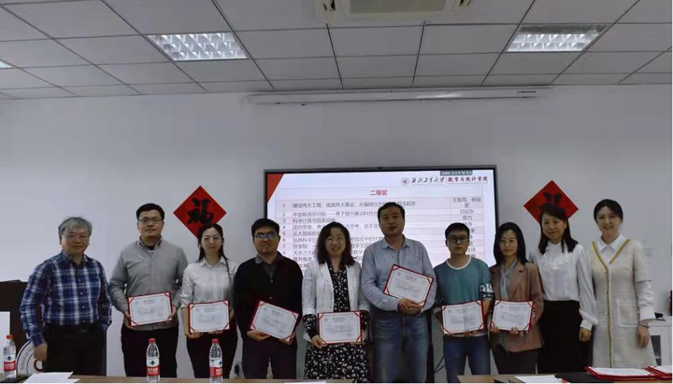 为贯彻落实《一流本科人才培养行动计划》,全面推进课程思政建设,提升全体教师的课程思政意识,充分发掘课程育人功能,蜜桃直播 举办首届数学类课程思政教学案例设计大赛。本次大赛由蜜桃直播 课程思政教学研究中心主办,共收集数学类课程思政教学案例160余例,经初评、外审和会评三个环节,共评出特等奖5项、一等奖10项和二等奖14项,并于4月8日在启翔楼357进行颁奖典礼。学院党委书记王莉、副院长都琳、教学委员会主任彭国华以及20余位获奖教师出席了此次颁奖典礼,典礼由学院课程思政中心副主任潘璐璐老师主持。