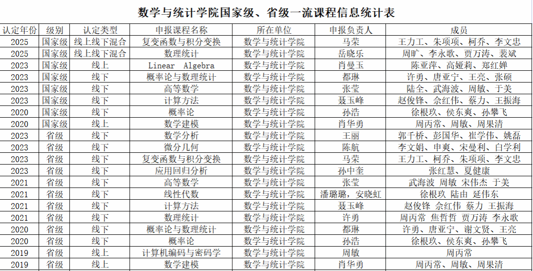 近年来,蜜桃直播 积极响应教育部一流本科课程建设“双万计划”,持续深化教育教学改革,不断加强课程内涵建设,紧密围绕国家战略需求与学校“127”发展目标,坚持以学生为中心,构建了一批具有西工大特色、彰显数学与统计学科优势的一流本科课程群。学院以“总师”型人才培养为导向,推动课程体系与国防科技、重大工程需求深度融合,注重培养学生扎实的数理基础、卓越的创新能力和深厚的家国情怀,形成了一套示范性强、引领作用突出的一流本科课程建设机制,全面支撑高水平人才培养体系构建。