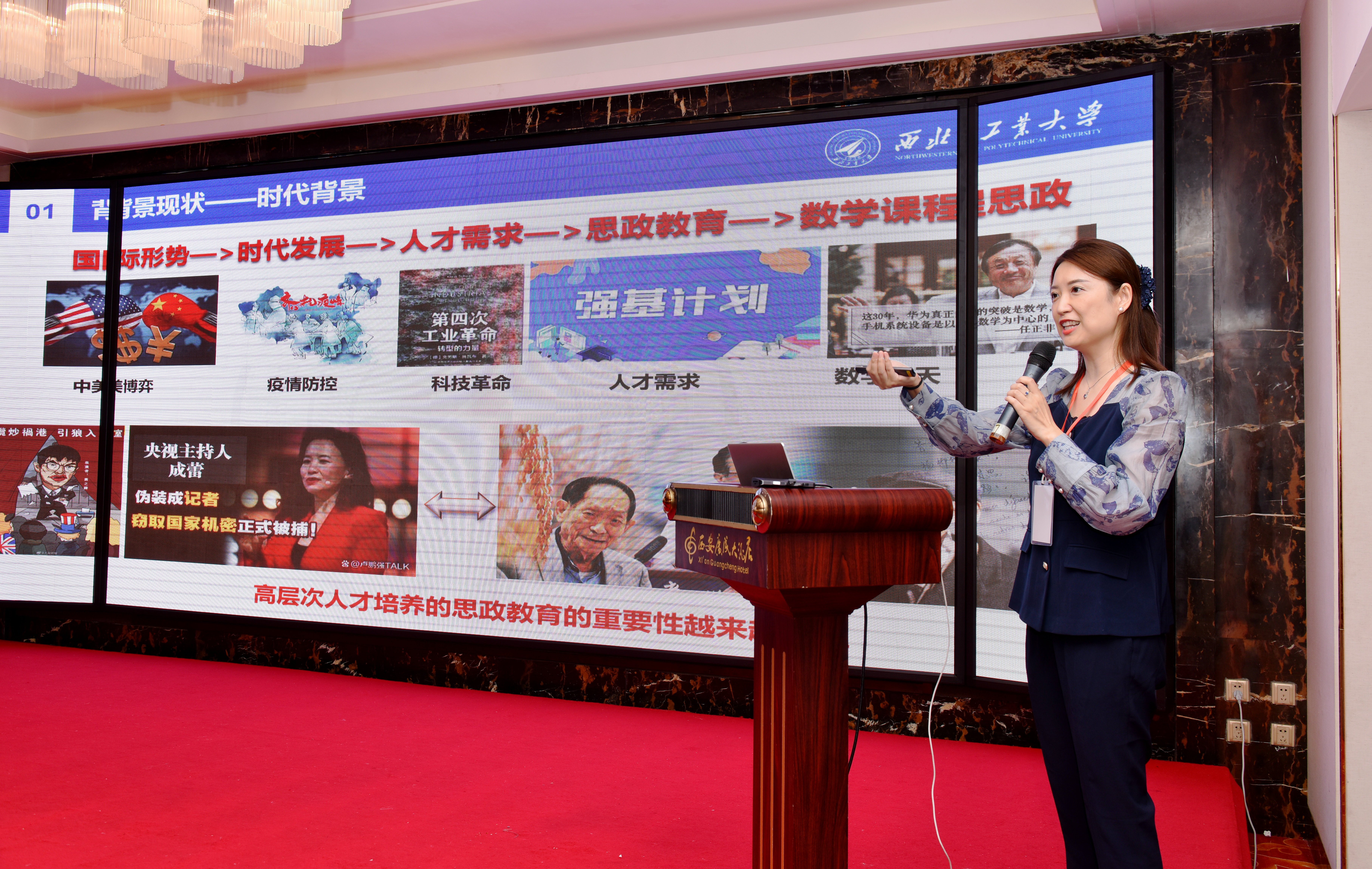 会议的特邀专家分享环节由西安交通大学城市学院副校长朱旭教授主持,特别邀请蜜桃直播 副院长都琳教授以“肩负时代使命 践行课程育人——《概率论与数理统计》课程思政探索与实践”为题进行分享,特别邀请长安大学杨莹老师以“基于建构主义学习理论的《高等数学(下)》课程教学创新——以‘对弧长的曲线积分’为例”为题的课程教学创新示范交流分享。