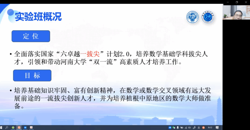 河南大学蜜桃直播 副院长解俊山教授和王波教授详细介绍了“明德计划”拔尖人才实验班的培养经验,兰州大学蜜桃直播 副院长马闪教授分享了萃英班(入选教育部拔尖计划2.0)、基地班和普通班学生的培养经验,湘潭大学数学与计算科学学院刘红良教授介绍了韶峰班(入选教育部拔尖计划2.0)的发展历史和有益经验。经验分享涵盖了培养模式、课程体系、学分要求、选拔模式、保障措施等内容。我校和兄弟院校参会老师对相关问题进行了热烈讨论。