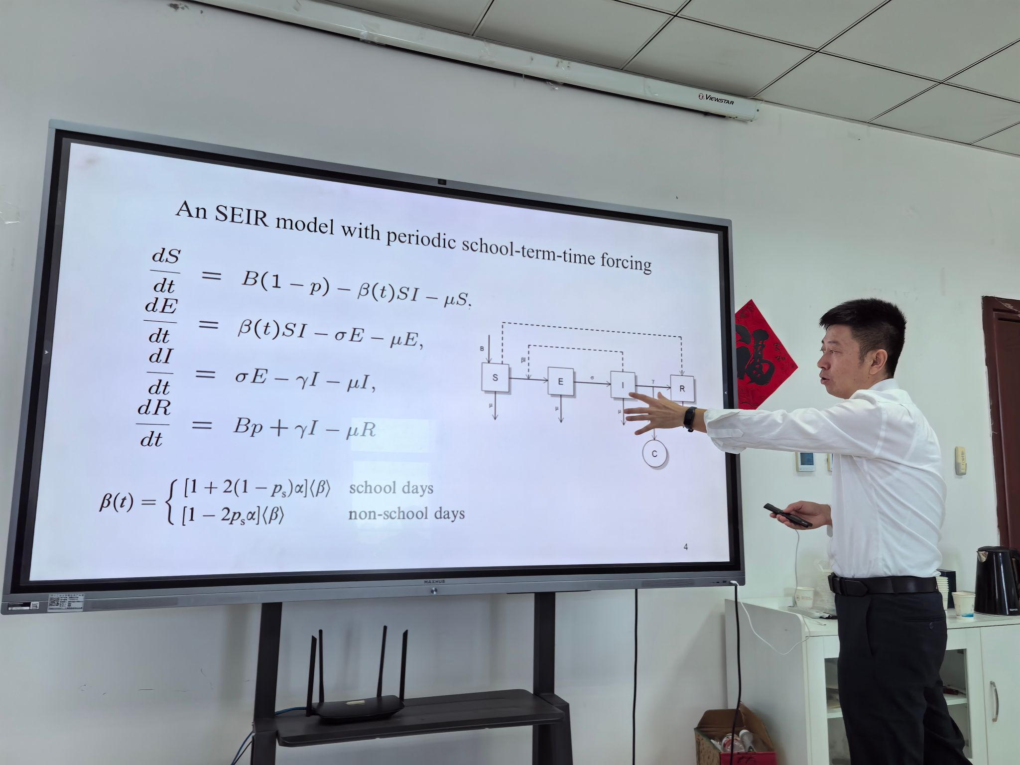 何教授在报告中评估了2021年COVID-19疫苗接种的有效性,通过采用常微分方程建模方法,分析了疫苗在预防死亡方面的效果,借鉴美国县级数据的统计分析,与美国疾控中心Amitabh B Suthar团队和英国帝国理工Oliver J Watson团队对比,提出了简单有效的数学模型。何教授在报告中强调建模要遵从奥卡姆剃刀原理,简单有效就好,而模型验证则要基于真实数据,并指出数据分析中的统计建模面临着诸多挑战的同时也存在新的时代机遇。