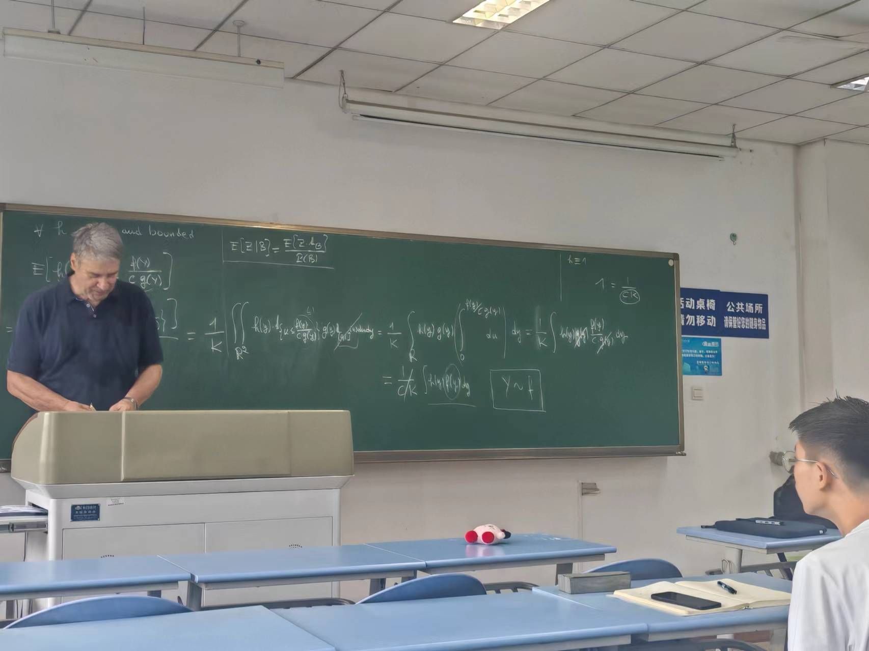 在为期六天的课程中,Limnios 教授以清晰严谨的授课风格,全程采用英文教学,有效锻炼了学生的专业英语听力与理解能力。他注重理论与应用的结合,通过大量实例和互动提问,激发学生的思考与参与热情,课堂氛围活跃。参与学生表示,通过本次课程不仅系统掌握了随机过程的核心理论与应用方法,还提升了在相关领域开展研究的兴趣与能力,为今后的学术研究和专业发展打下了良好基础。课程结束后,学院都琳教授、唐亚宁教授、谢文贤副教授和彭江军副教授就教学与科研进行进一步的研讨。