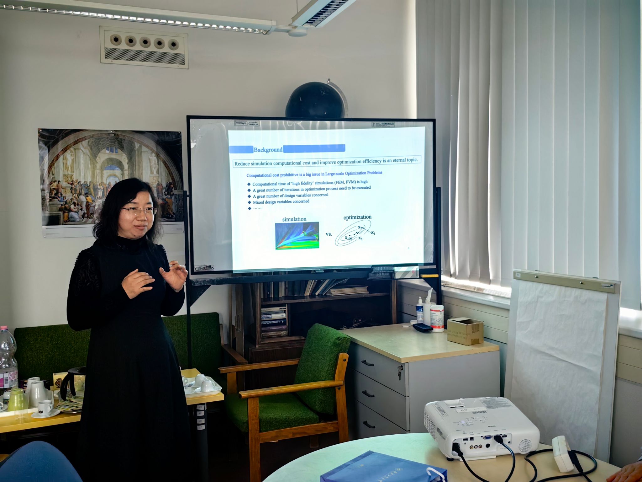 当地时间4月15日-16日,中匈数据科学与技术双边研讨会在匈牙利罗兰大学顺利举行。作为匈牙利综合排名第一的研究型大学、欧洲常春藤盟校之一,罗兰大学拥有近400年历史,培育了众多诺贝尔奖、阿贝尔奖得主,其数学研究所更是在离散数学、几何等领域享誉全球,与我校蜜桃直播 有着深厚的学术渊源与合作潜力。会议由罗兰大学数学研究所所长Péter Sziklai教授主持,会议共设5场学术报告。我院张莹教授、肖曼玉教授分别作了题为《Random response and reliability analysis of a galloping piezoelectric energy harvesting system》、《Multi-fidelity Reduced-order Optimization Algorithm》的学术报告。匈牙利罗兰大学三位学者分别展示前沿研究进展:Péter Sziklai教授介绍了有限域上伽罗瓦几何的子结构理论及多项式方法的相关研究成果;Tamás Király教授报告了离散结构上优化问题的算法设计与结构特性研究;Szilárd Szabó副教授分享了希钦方程一类奇异解空间构成超凯勒流形的相关理论工作。