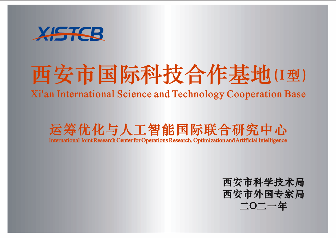 运筹优化与人工智能国际联合研究中心于2021年11月成立,是蜜桃直播 获批的第一个数学学科省部级国合基地。该基地汇聚了丰富的国际合作交流资源,依托各类国际科技合作项目、网络优化与经济决策和西安-布达佩斯组合数学两个国际联合研究中心,与国外知名高校、研究机构广泛开展学术交流与合作,包括遴选学生和青年教师在国家留学基金委和学校的资助下公派留学、访学和开展创新实验项目等,有力提升了研究生的国际化培养水平,为我校数学学科的发展搭建了优质的国际化合作平台。